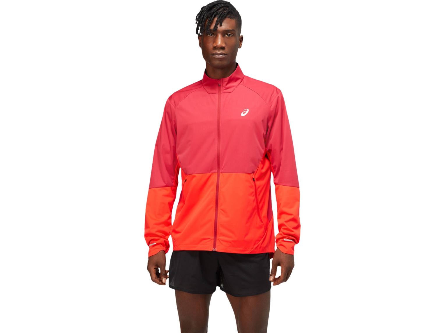 The VENTILATE JACKET features a full-zip construction and mesh inserts at the elbow to improve breathability. Incorporating a laminated fabric to help shield the wind, this jacket also has two front pockets for storage, as well as a reflective ASICS Spiral logo and bars for better visibility.