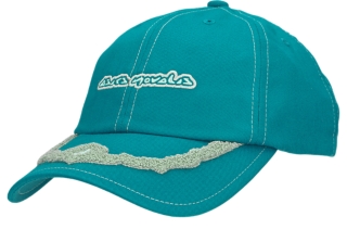āThe cap features a chenille peak design that's inspired by archival ASICS lines. Meanwhile, a humanoid caricature appears on the front.ā