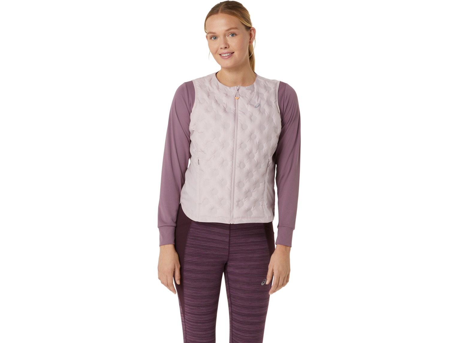The gilet features side zippered pockets for additional storage options during your run. At least 50% of the garment's main material is made with recycled polyester to reduce waste and carbon emissions.