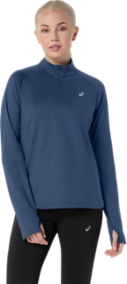 Donāt let the weather stop your run. When temperatures are low, the wind is howling, or the rain wonāt let up you need this functional winter 1/2 zip top. Featuring a brushed fabric for warmth, the top also implements a higher neck design to help protect against the wind. Additionally, strategically constructed details, like the chinguard helps provide protection from wind, thumbholes help keep the sleeves from riding up, while the 1/2 zip allows the runner to unzip and experience better ventilation. This 1/2 zip top also has reflective details to improve visibility in low-light conditions.