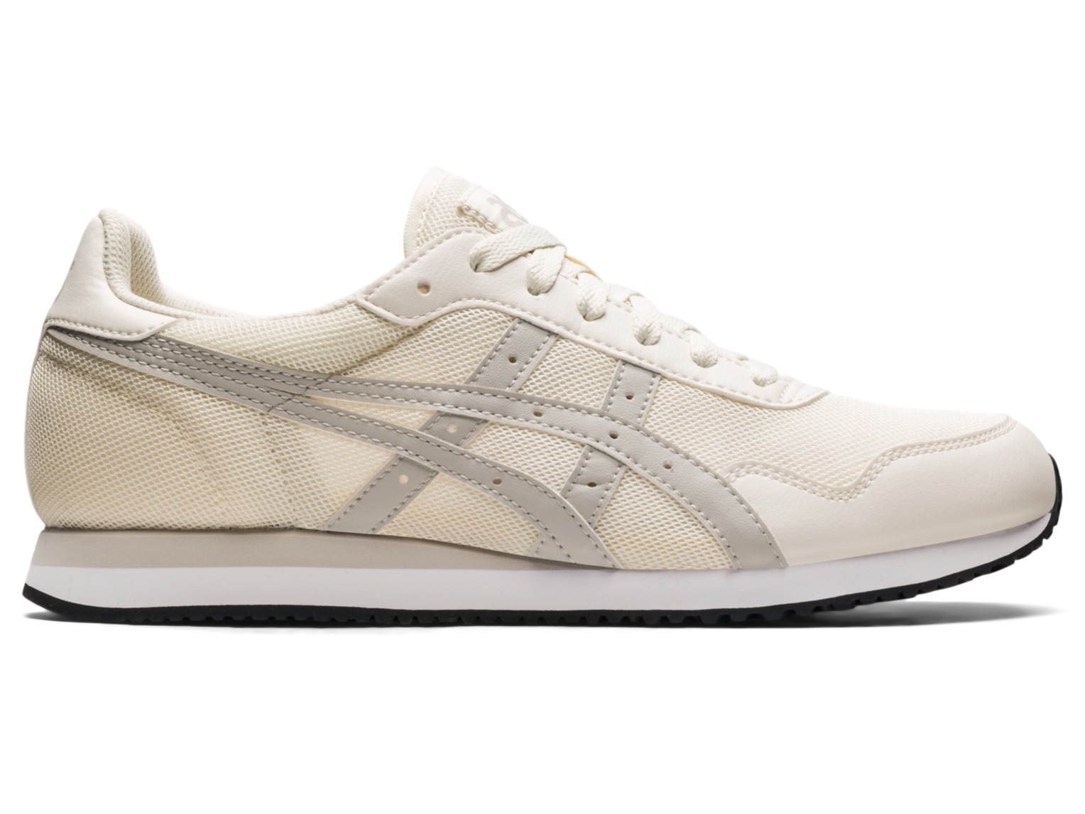 The TIGER RUNNER⢠shoe is designed for a feel-good cushioning experience and mindset. Borrowing components from the TARTHER⢠sneaker, this shoe replicates the look of jogging footwear that was popular in the 1980s. Formed with a heritage racing flat design, this silhouette's upper blends synthetic leather paneling with recycled mesh materials. It features a more sustainable manufacturing approach as we move towards creating a sound earth.
