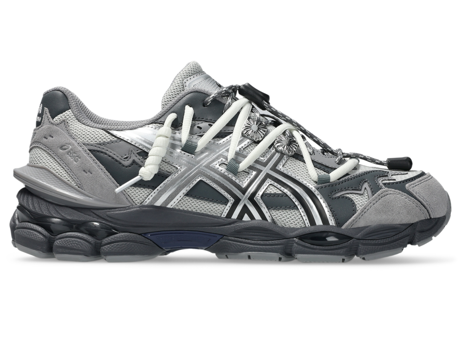 Its upper construction is made with a combination of suede and exaggerated leather overlays. These materials are met with two sets of lacesāone of which features an elongated speed lacing system. There's also a pronounced external heel counter and silver concho details on the eyelet stay.