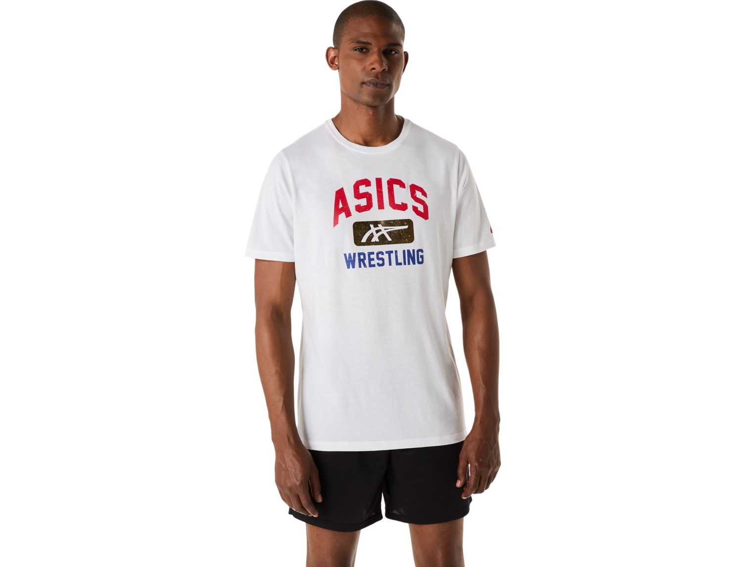 Constructed with a soft knit fabric, this tee is functional for a variety of workout regimens. Additionally, this tee also incorporates our classic athletic Wrestling graphic on the center front chest, now in USA colors.