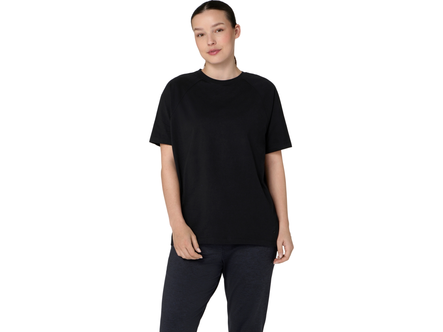 It's made with a soft knit fabric for daily comfort. The top also features a relaxed fit that's roomy for various movements.