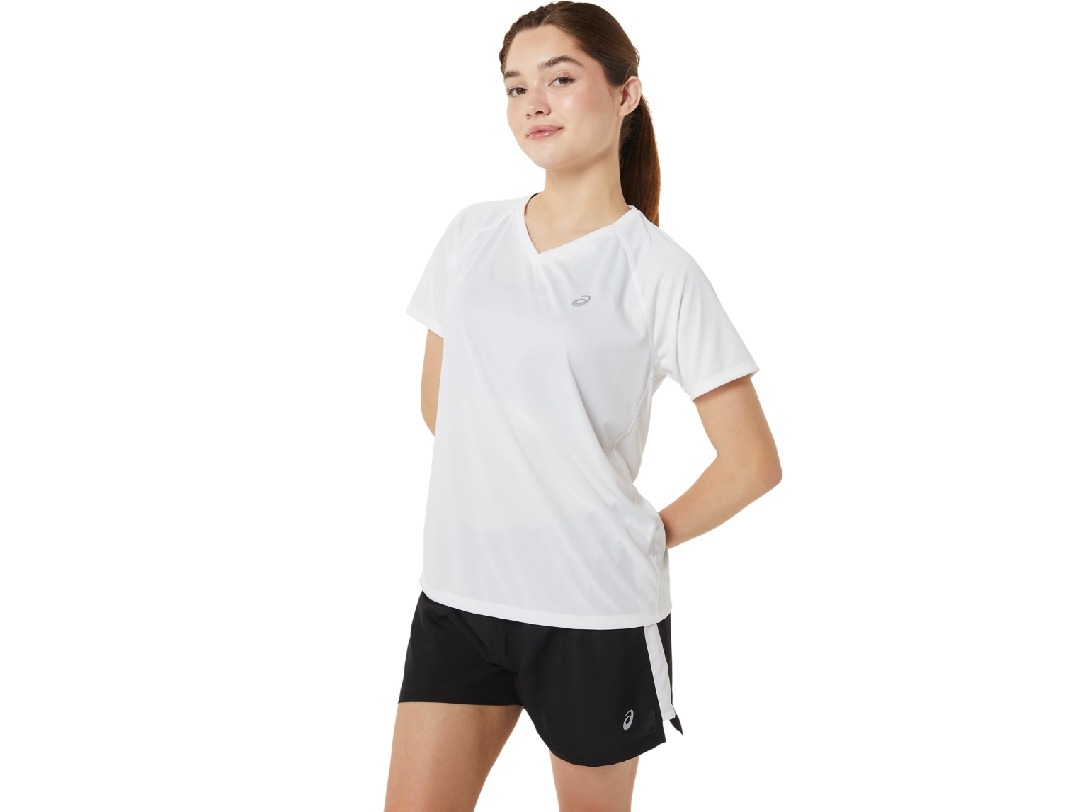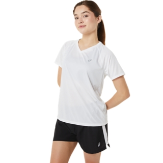 This short sleeve V-neck top is designed to provide a comfortable next-to-the-skin feel. Its comfortable knit fabric is accented with reflective details that help improve visibility when you're running in low-light settings.