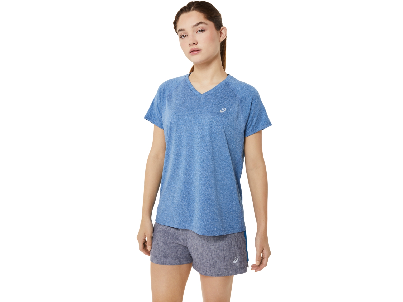 This short sleeve V-neck top is designed to provide a comfortable next-to-the-skin feel. Its comfortable knit fabric is accented with reflective details that help improve visibility when you're running in low-light settings.