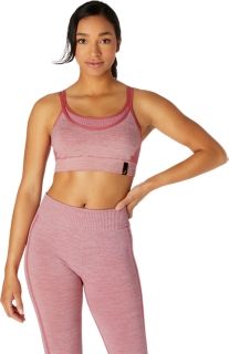 Functional for various yoga and fitness routines, the REVERSIBLE SEAMLESS BRA is designed with a compressive fabric that's comfortable and moisture-wicking. It's reversible construction is made with a double-layer that allows you to customize your look while offering excellent range of motion. Minimal seams are complemented by a recycled polyester yarn material that provides a soft hand feel and excellent comfort. Additionally, this bra has removable pads that make it easy to switch up the look and feel.