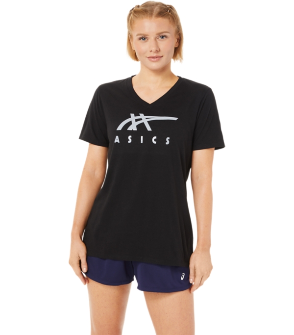 WOMEN'S ASICS STRIPES V-NECK