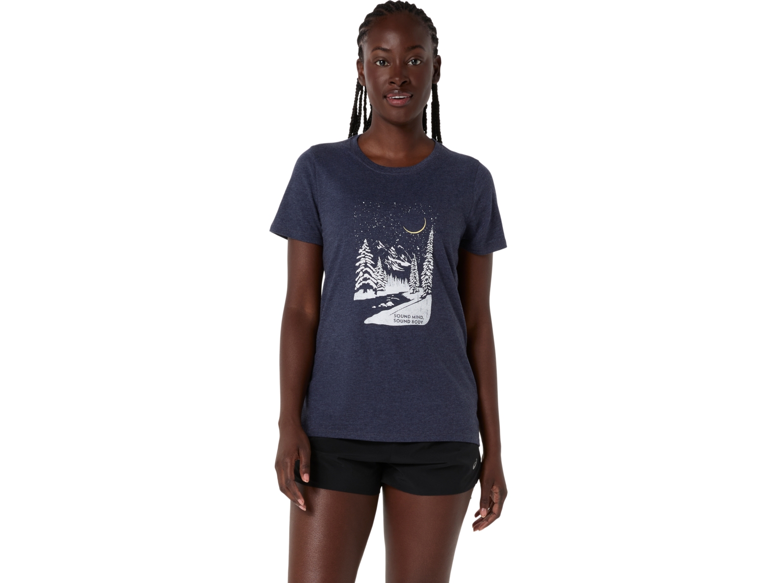 This short sleeve t-shirt is inspired by the winter season. It features a snowy winter wonderland graphic and our brand's "Sound Mind, Sound Body" phrase on the front. Lastly, the fabric is made with a cotton blend knit for comfort.